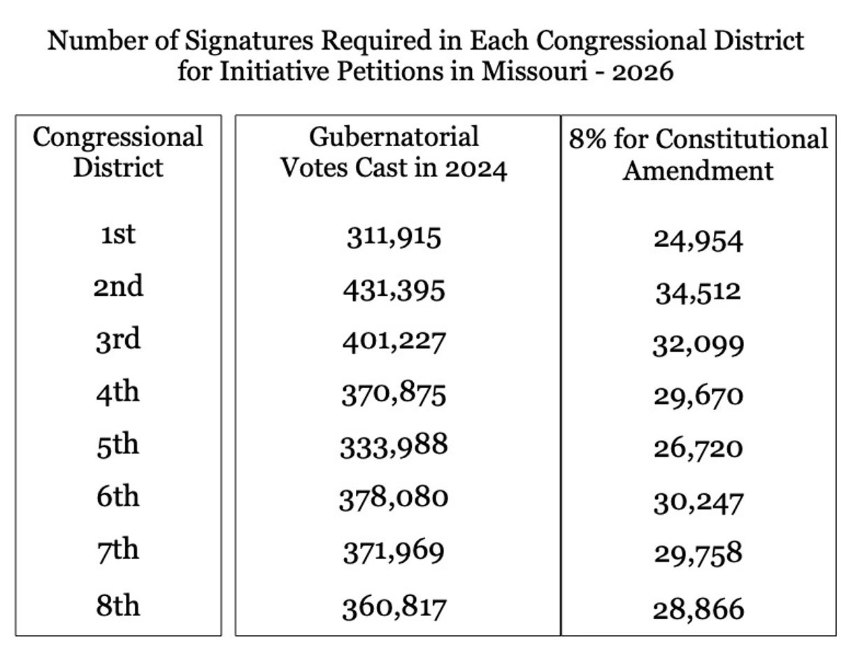 Initiative petitions for these proposed reforms have been approved for circulation. If the required number of Missourians sign these petitions by May 3, 2026, our pro-democracy movement will be “too big to fail”. These proposals will be on the ballot in Missouri on November 3, 2026. If approved by voters, these amendments to the Missouri Constitution will take effect immediately and –
